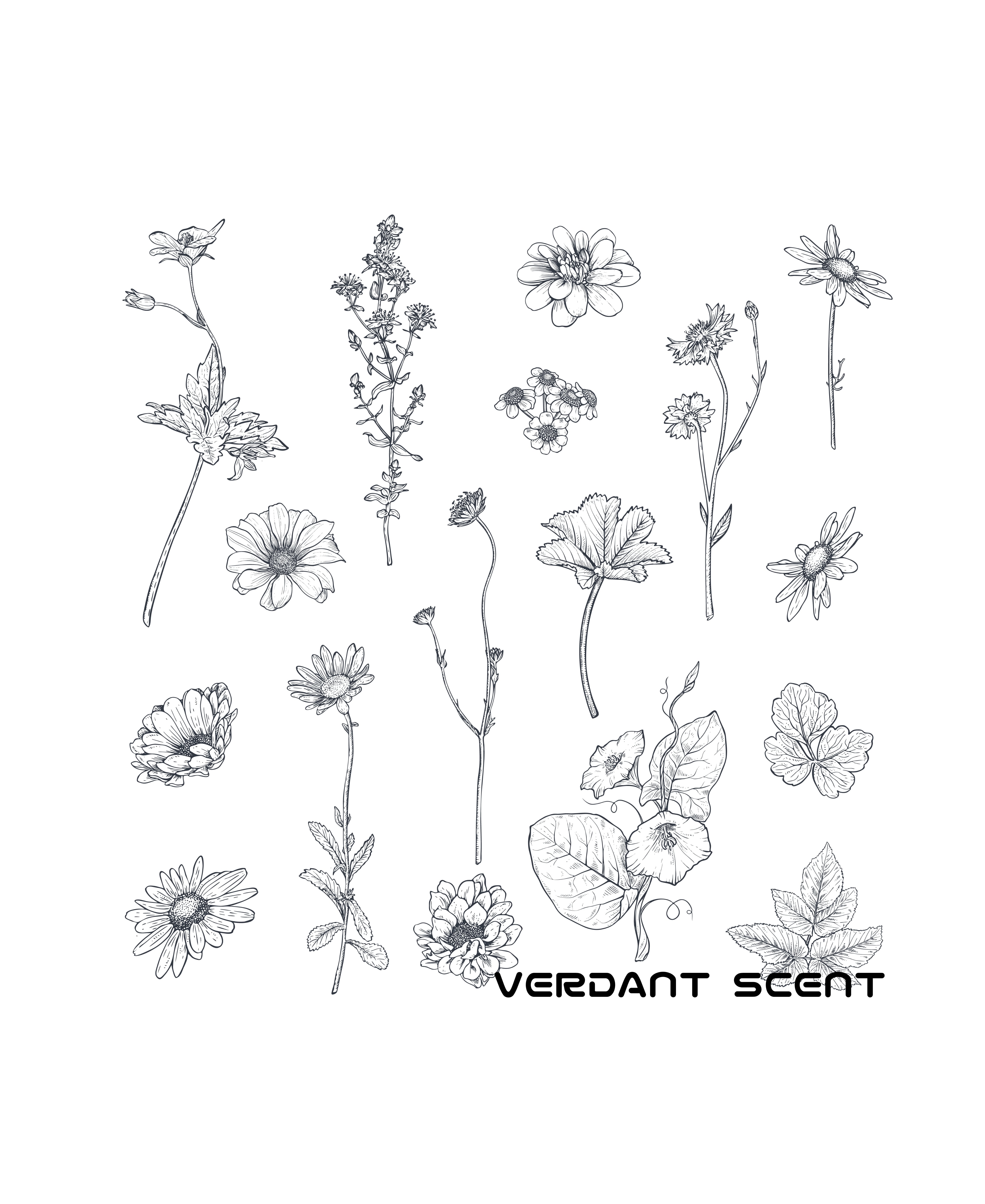 植物標本 「verdant scent」ドライフラワー柄 White Tシャツ