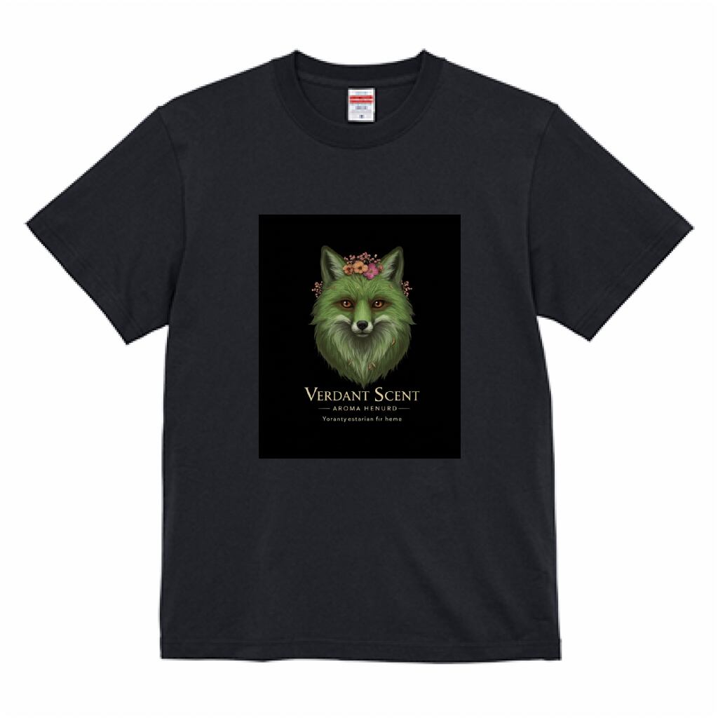 イメージキャラクターの北極狐「verdant scent」 オリジナル 限定Tシャツ 「 the fox 」 BLACK