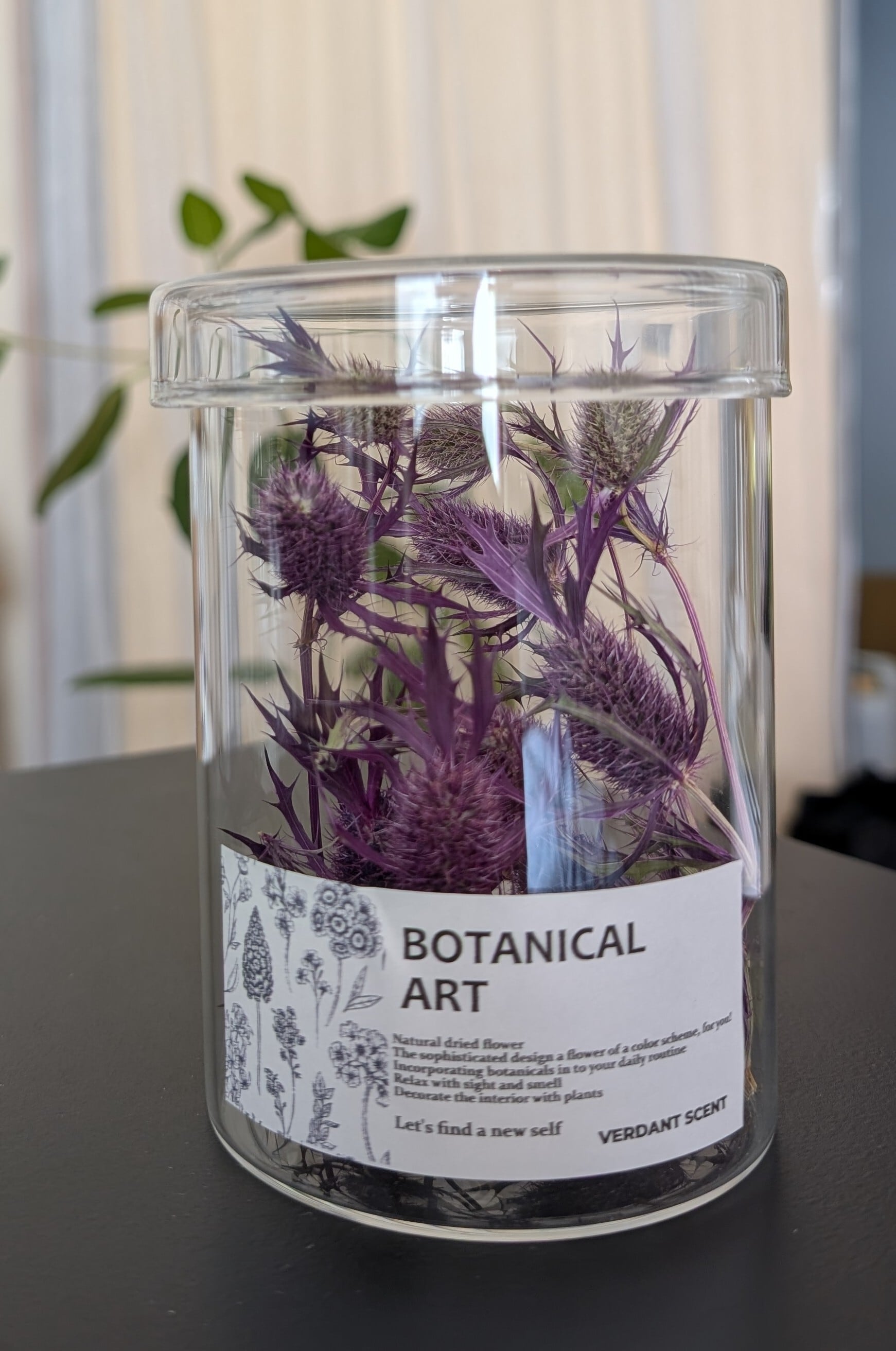 稀有な紫のエリンジュームを詰めたガラスケースで、