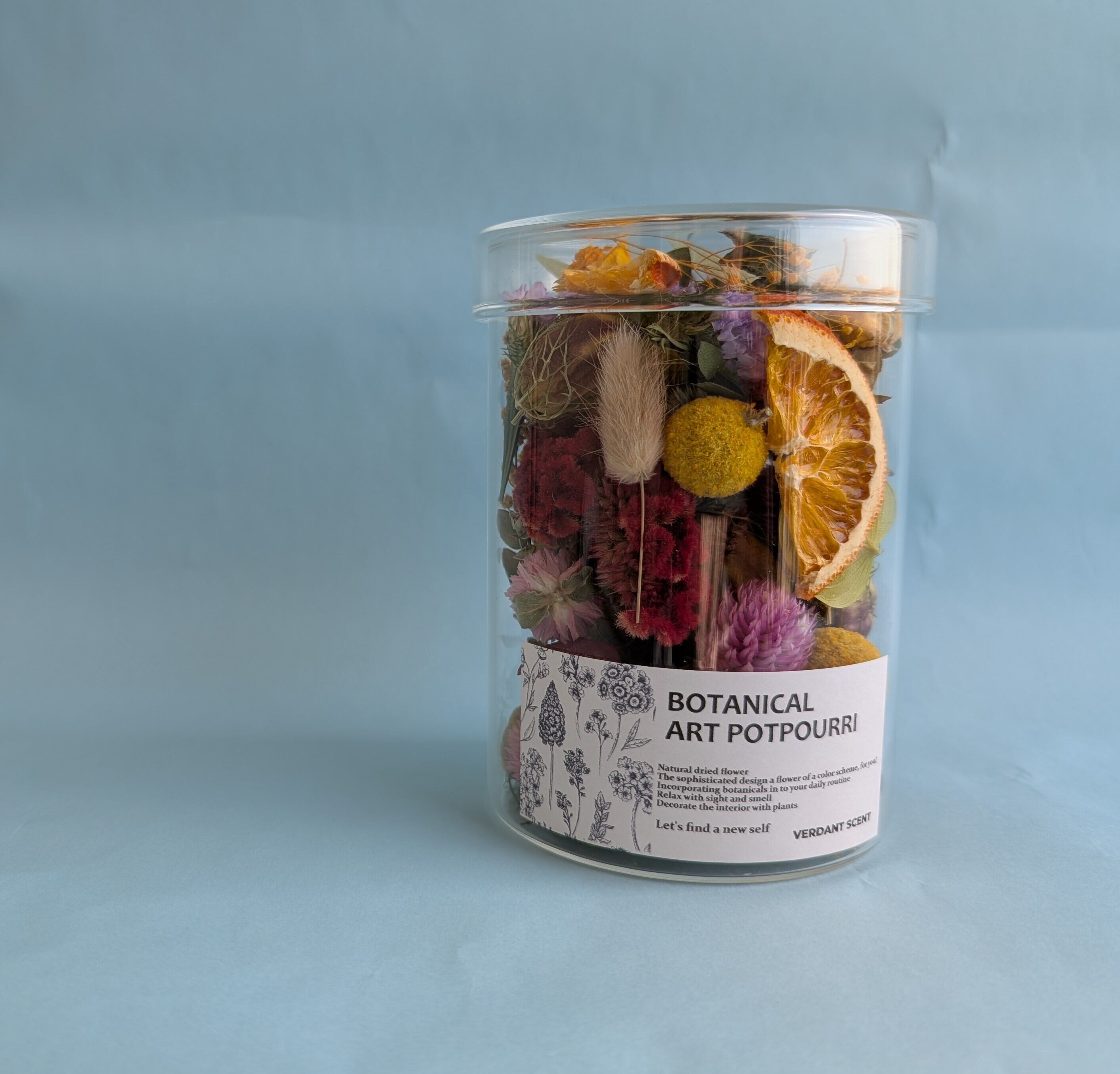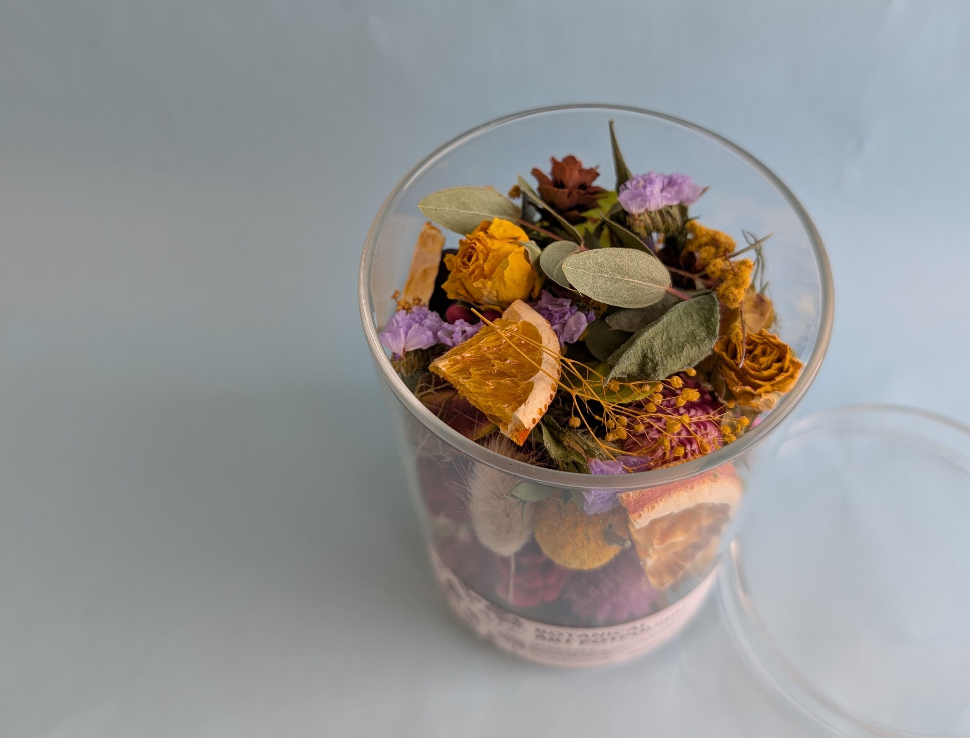 色とりどりのドライフラワーを詰め込んだ、見た目にも美しいフラワーポプリ。