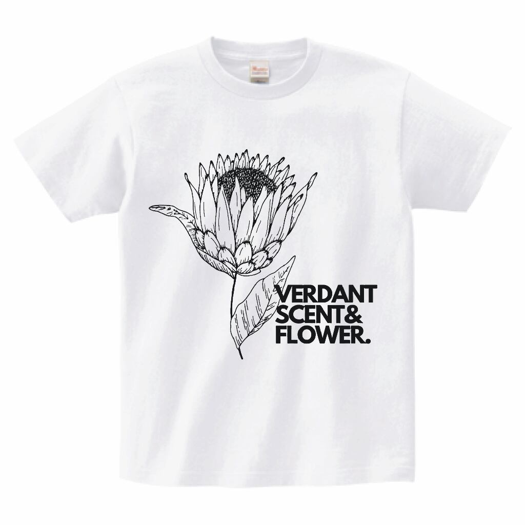 「アートを纏う – プロテアデッサンTシャツ」ホワイト