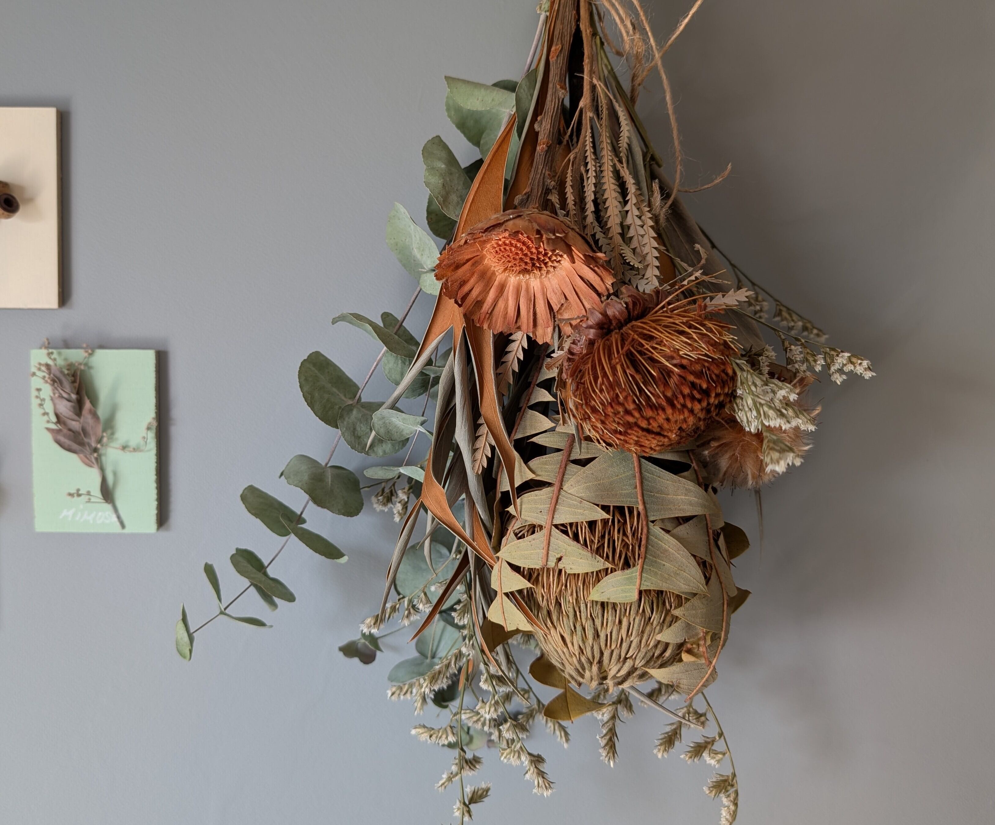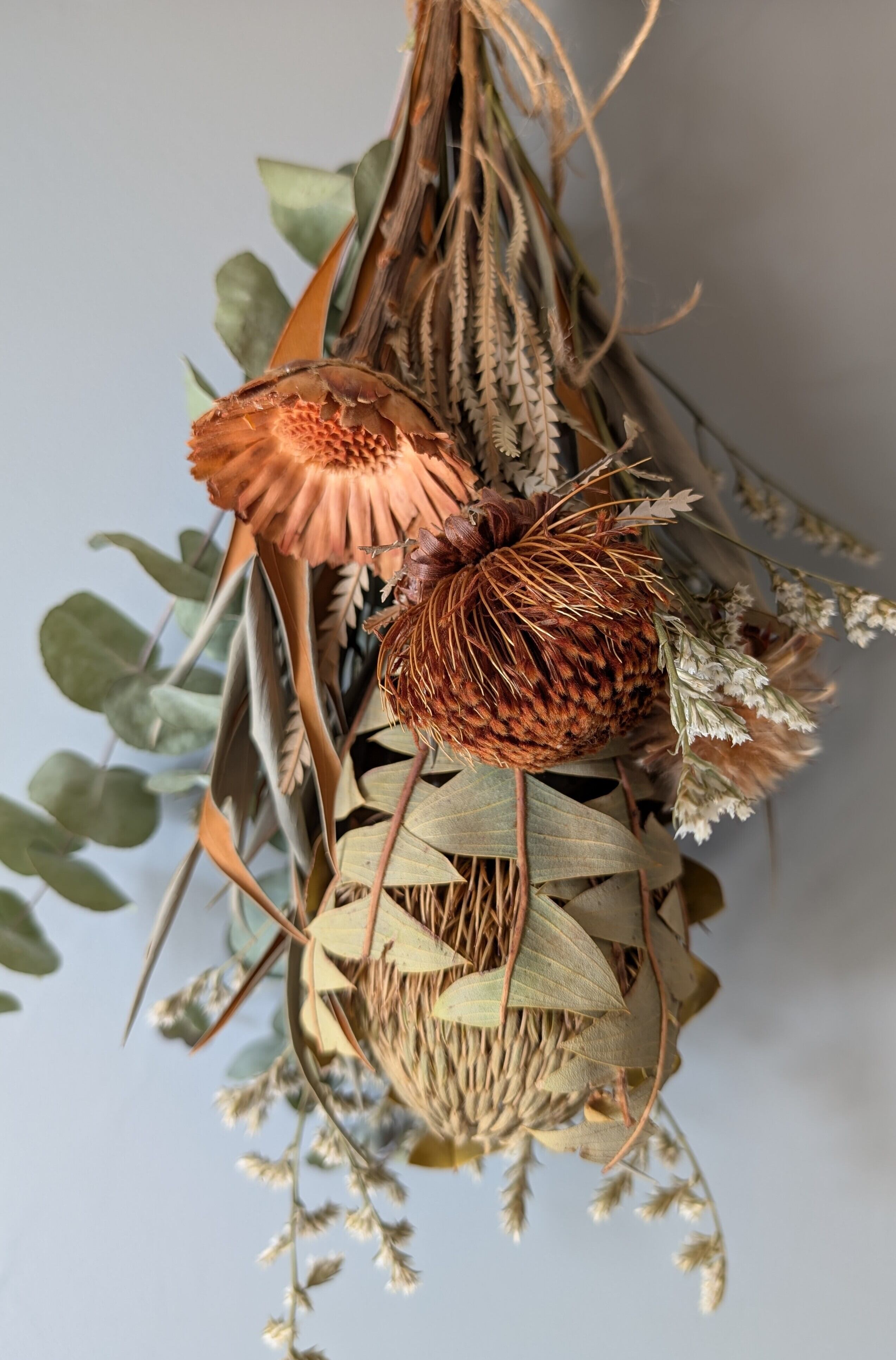 大地の力強さを感じる「アフリカンプロテアとワイルドフラワーのスワッグ」